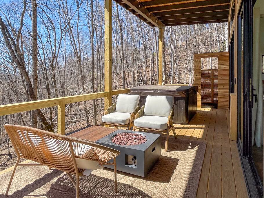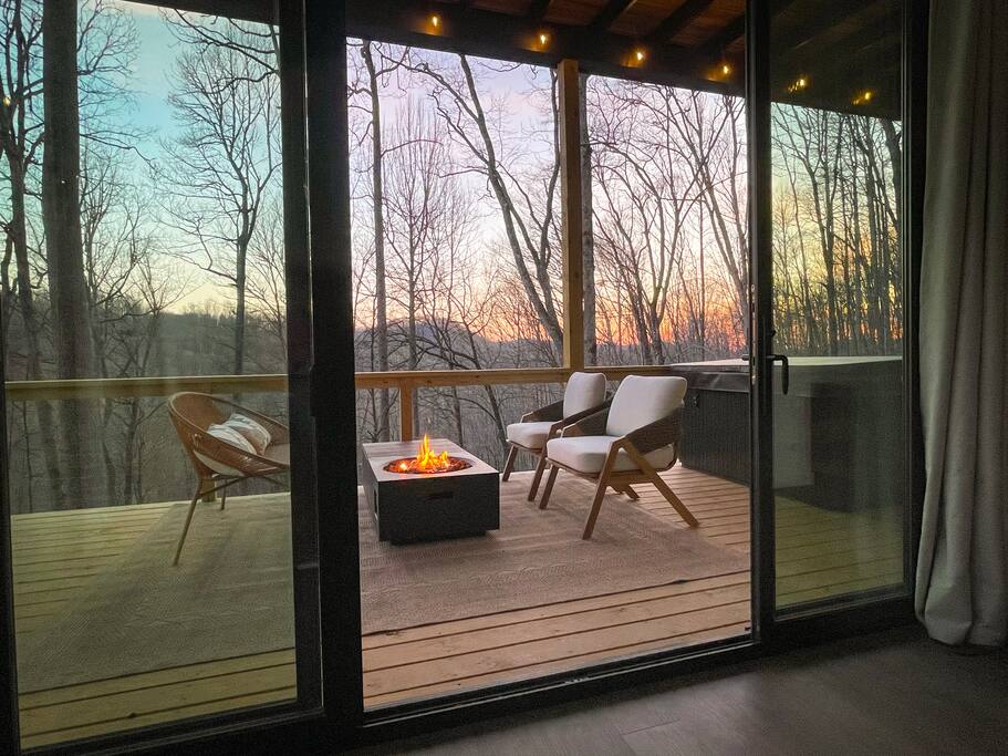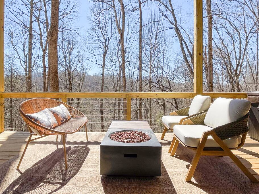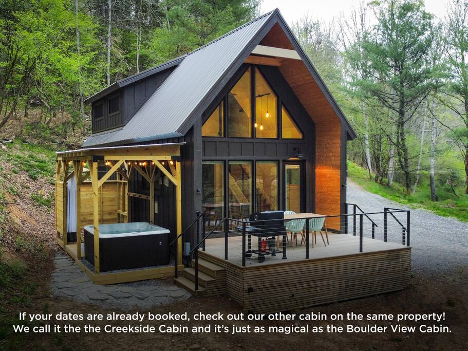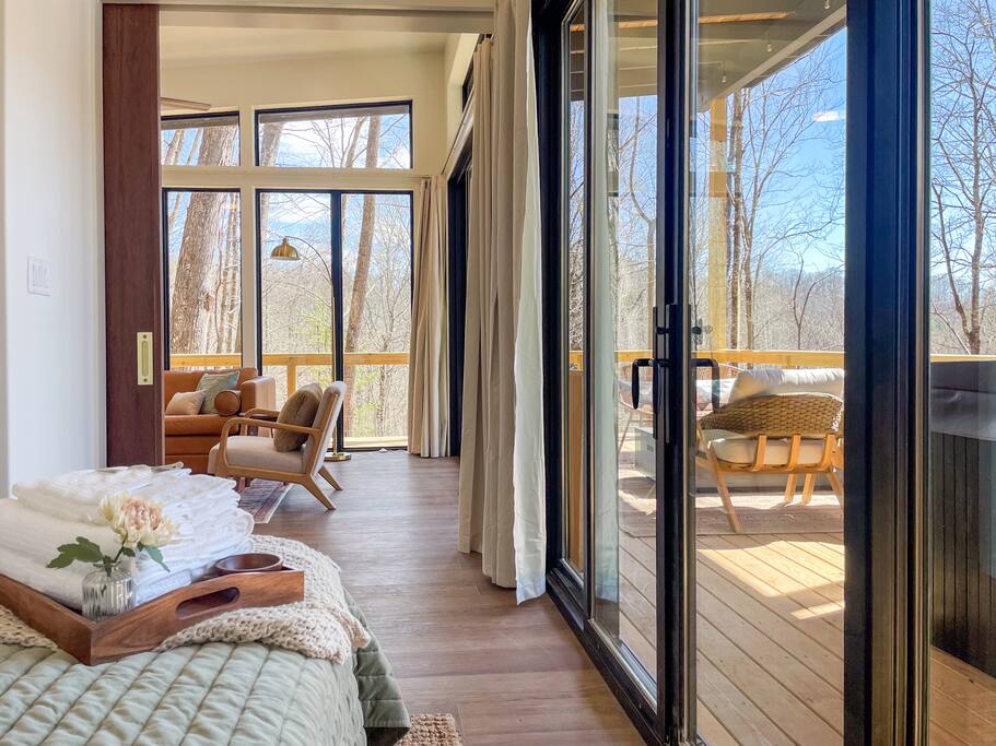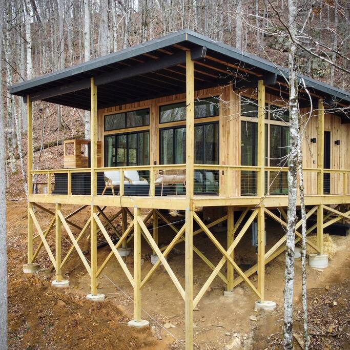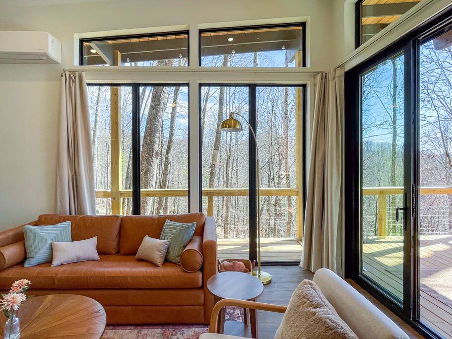 We call it a "cabin" because it's made of wood and sits high up in the Western North Carolina Blue Ridge Mountains, but it's not your typical "log cabin." We built a modern, Scandinavian inspired, "happy place" filled with natural light from the floor-to-ceiling windows surrounded by sweeping mountain views and large boulders. There are 2 cabins on our 64 acre property. This one sits halfway up the gravel mountain road (no 4WD required!) allowing for a quite, private stay. The other cabin is located at the entrance of the property and is far out of view.